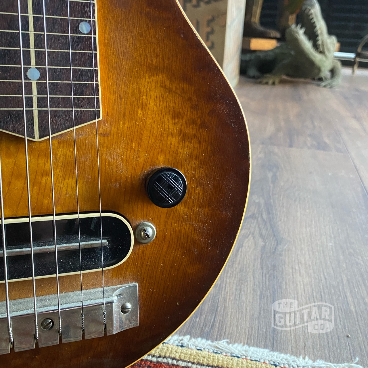 Deze 6-snarige Cromwell EG-H is vervaardigd uit massief maple en is afgewerkt met een prachtige sunburst. Het rosewood fretboard is uitgerust met dot inlays en de headstock beschikt over een MOP Cromwell inlay. Verder verkeert de EG-H in een hele nette staat. Zelfs de originele Yoda Head tuners werken naar behoren.