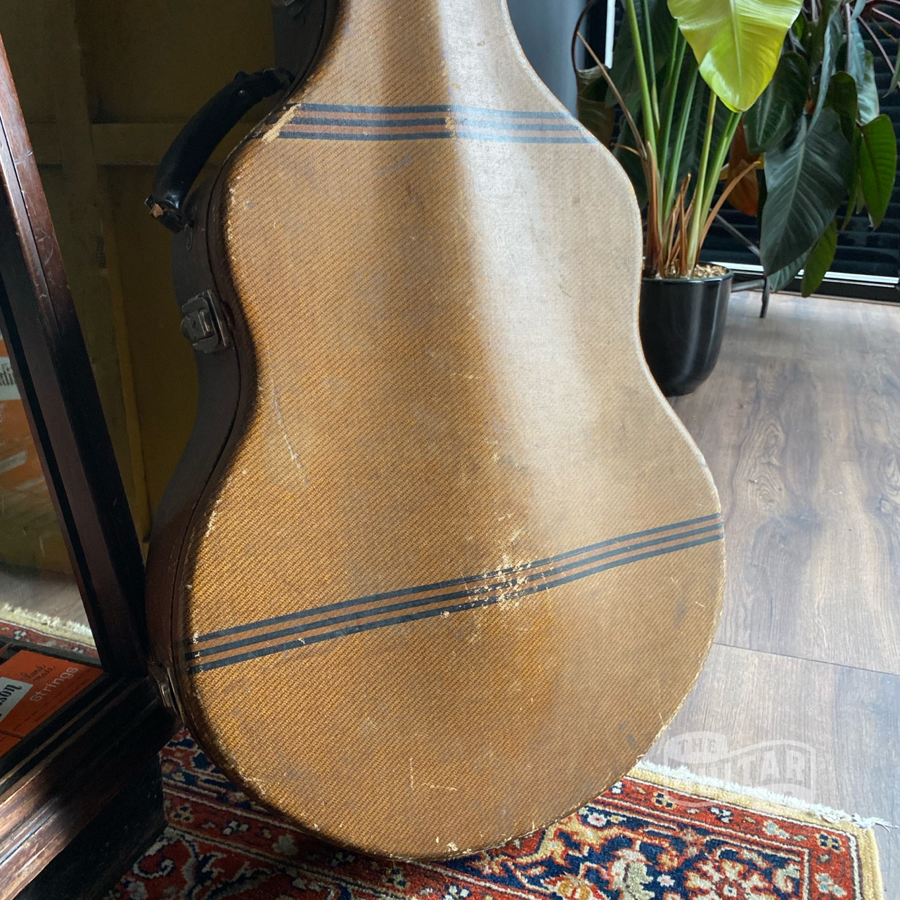 De koffer dateert van ongeveer 1937–1942 en draagt het Geib medallion, dat rond 1937 werd geïntroduceerd. Oorspronkelijk werden deze koffers vooral geleverd bij 17” modellen zoals de L-5 en SJ-200, maar ze passen ook perfect bij de Gibson L-7, L-10 en L-12.